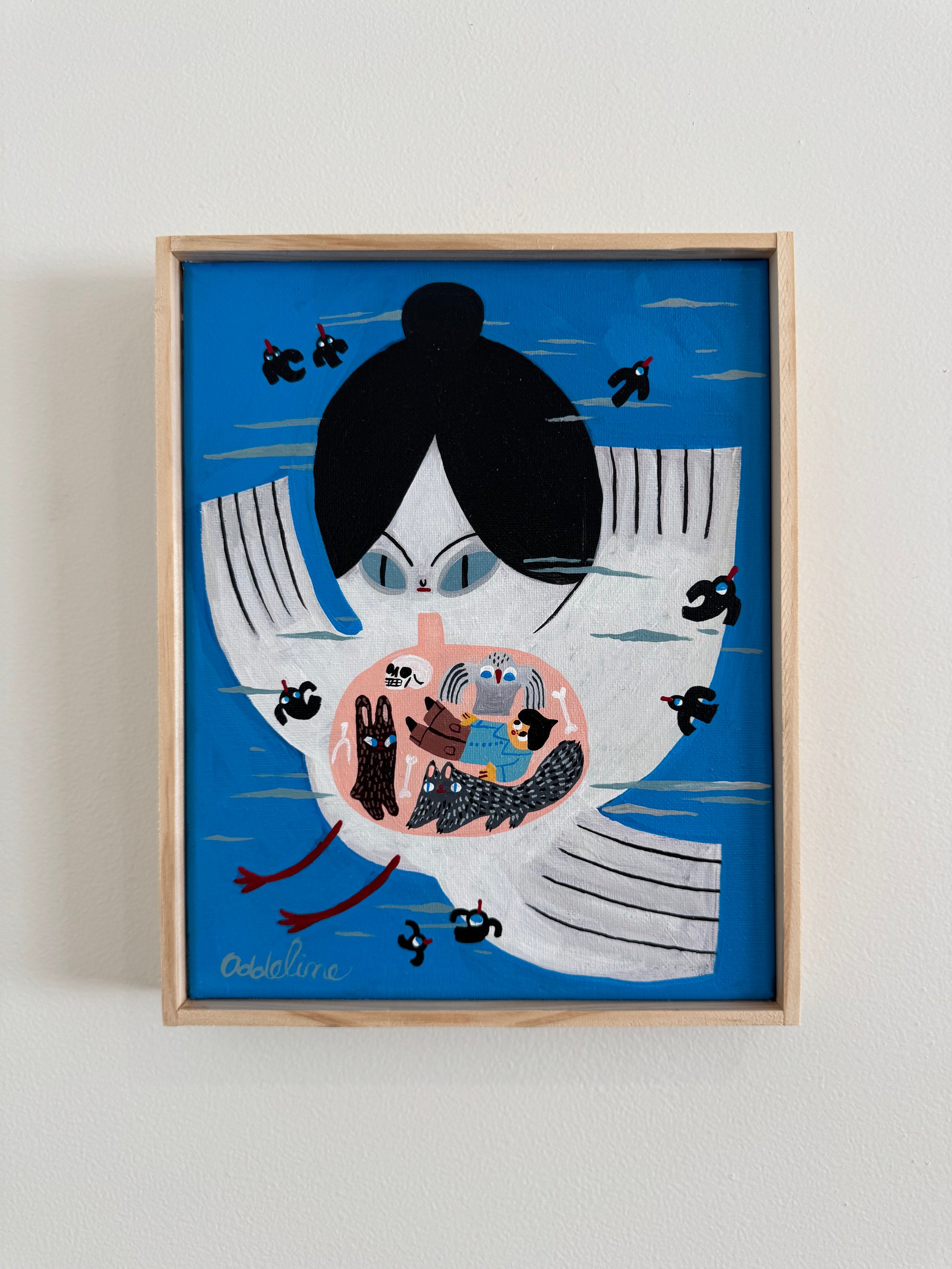 8.5 x 10.5 Orginal painting with handmade perfectly imperfect permanent box frame